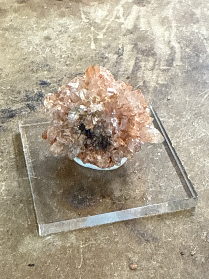 Orange Creedite stimulates creative vision and is an excellent crystal for raising the vibration of workspace. [Ahsian, 125] Its cluster formation radiates energy out to the surrounding environment, absorbing and cleansing negative energies, and can be gridded and left in place. This stone will purify other crystals but will need cleansing afterward. [Hall II, 110] Orange Creedite promotes success in one’s career or a relocation, particularly when independence is an issue. [Eason, 307]