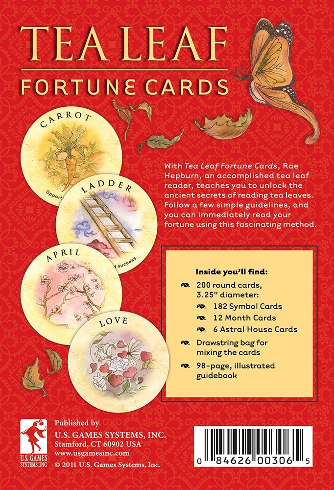 Tea Leaf Fortune Cards set offers an innovative system for reading with 200 beautifully illustrated cards depicting the traditional tea leaf symbols. The 98-page guidebook explains how to divine fortunes using tea leaves or Tea Leaf Fortune Cards. Follow a few simple guidelines, and you can immediately read your fortune. Set includes 200 round, symbol cards; drawstring pouch; and 98-page illustrated guidebook.