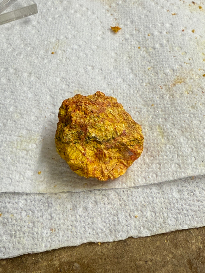 One should be extremely cautious when handling or working with Orpiment. This mineral can leave toxic traces of arsenic on your hand if not washed, which can be poisonous if ingested or rubbed into the eyes. Additionally, avoid placing it in your pockets as traces can attach to your clothes. We highly urge you to meditate with Orpiment, just be extremely safe about it. As soon as you finish your meditation session, head over to the sink and immediately wash your hands. This way one can remove any trace of arsenic that may have rubbed off of the mineral. Also, be wary of the hardness of Orpiment because it is very brittle.