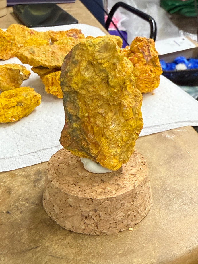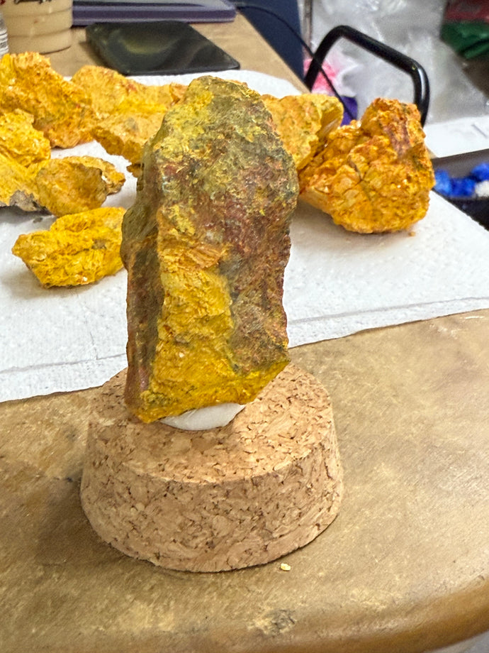 Orpiment resonates with one's solar plexus chakra, specifically one’s personal will. Your “will” will become activated and aligned with your emotional body. This will help you become more in touch with your personal desires. Your energy level will increase when using this stone, as well as your focus, strength, and confidence. One will notice themselves having a different perception of the things and people closest to them, resulting in a possible change of environment. Now that one is fully aligned and focused on their dreams, any baggage they carry that does not serve them will soon be replaced. This is not only healthy for someone with high aspirations, but also extremely challenging for anyone to do. Orpiment makes this process much less stressful and emotionally taxing by being a constant reminder of what’s most important to you.