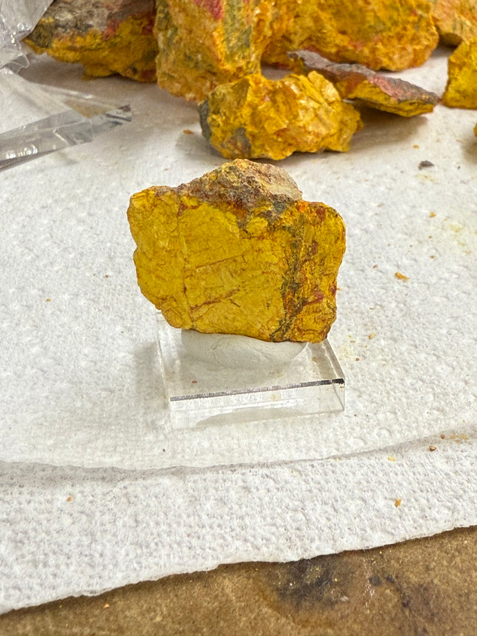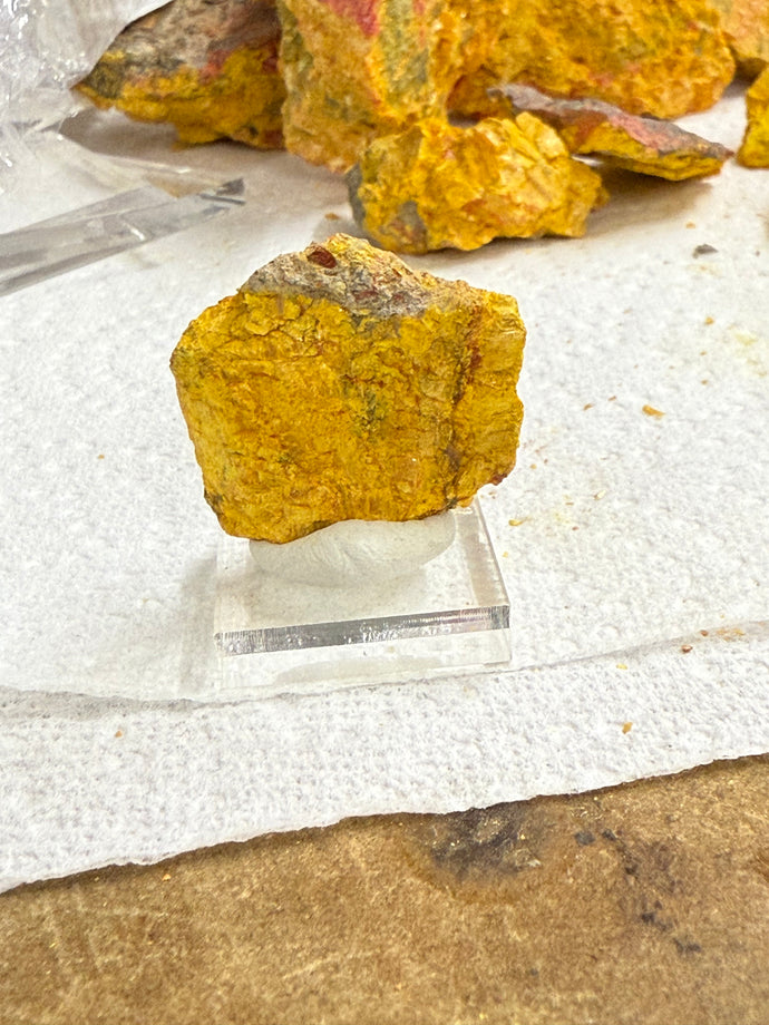 One should be extremely cautious when handling or working with Orpiment. This mineral can leave toxic traces of arsenic on your hand if not washed, which can be poisonous if ingested or rubbed into the eyes. Additionally, avoid placing it in your pockets as traces can attach to your clothes. We highly urge you to meditate with Orpiment, just be extremely safe about it. As soon as you finish your meditation session, head over to the sink and immediately wash your hands. This way one can remove any trace of arsenic that may have rubbed off of the mineral. Also, be wary of the hardness of Orpiment because it is very brittle.